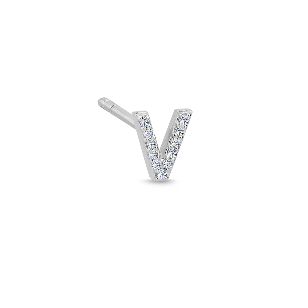 Bogstav Ørestik V m. pavé 0,044ct. W-si - 14 kt. Hvidguld