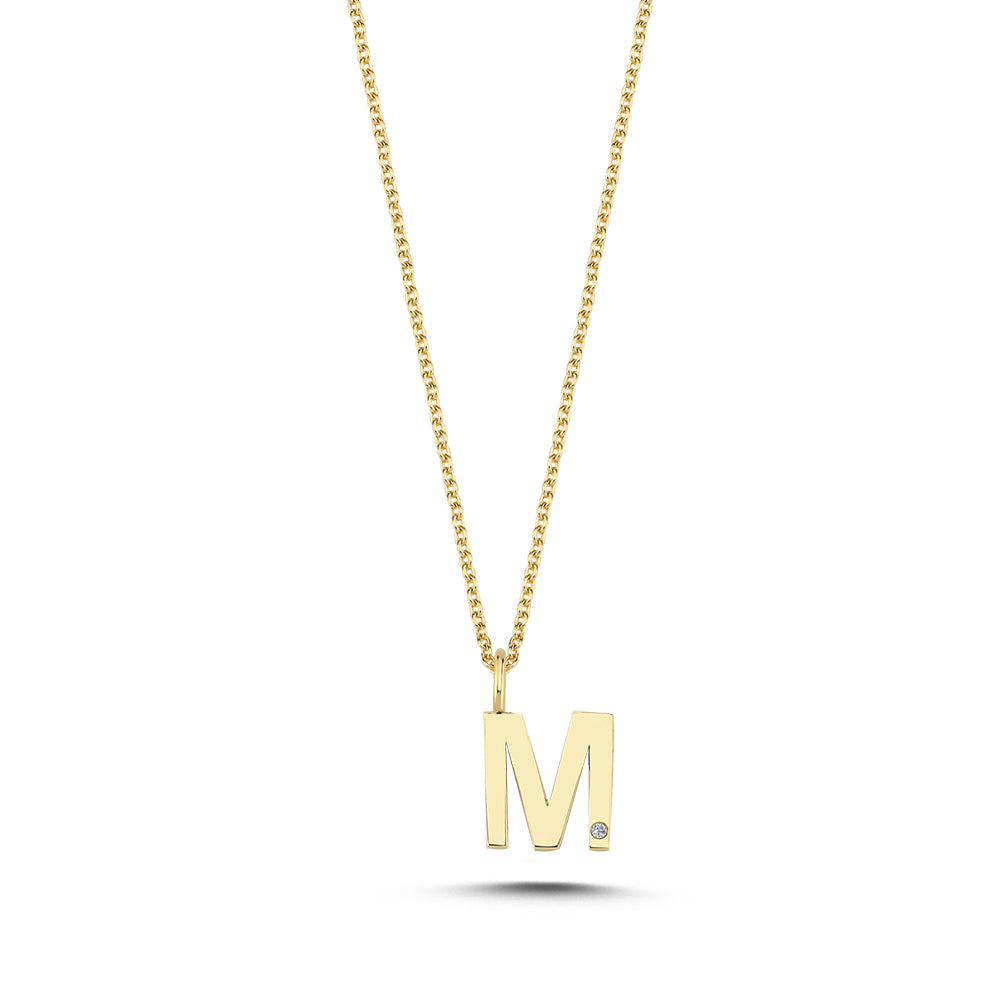 Bogstavvedhæng M med 1 x 0,005ct. W-si 9,5mm - 14kt. Guld
