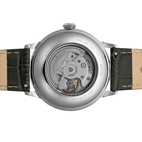 Drevet af et automatisk in-house værk med mulighed for manuel optræk, kombinerer dette ur klassisk håndværk med moderne funktionalitet – et stilfuldt valg til enhver garderobe.