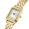 Ivy-modellen kombinerer en ren hvid urskive med en smuk gulddoublé-urkasse og en matchende sølv- og guldfarvet meshlænke, der giver et raffineret og moderne look. Den ikoniske, let rektangulære urkasse med blødt afrundede hjørner skaber en elegant silhuet, mens den lyse skive sikrer et klart og tidløst udtryk.