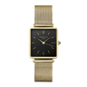 The Boxy QBMG-Q06 er udstyret med en sort urskive, en urkasse i rustfrit stål og en rem i rustfrit stål.