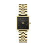 The Boxy XS QMBG-Q025 er udstyret med en sort urskive, en urkasse i rustfrit stål og en rem i rustfrit stål.