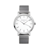 The Mercer MWS-M40 er udstyret med en hvid urskive, en urkasse i rustfrit stål og en rem i rustfrit stål.