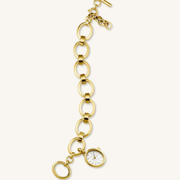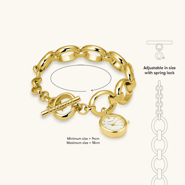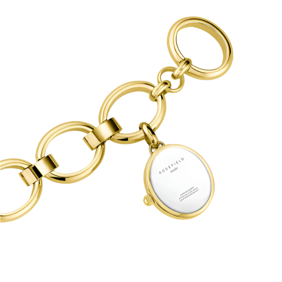 The Oval Charm Chain SWGSG-OV13 er udstyret med en sølv urskive, en urkasse i rustfrit stål og en rem i rustfrit stål.