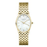The Oval OWGSG-OV01 er udstyret med en hvid urskive, en urkasse i rustfrit stål og en rem i rustfrit stål.