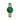 The Pearl Edit PEGMG-R10 er udstyret med en grøn urskive, en urkasse i rustfrit stål og en rem i rustfrit stål.