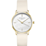 The Pearl Edit RMBLG-R04 er udstyret med en perlemor urskive, en urkasse i rustfrit stål og en rem i skind.