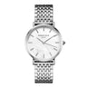 The Upper East Side UEWS-U22 er udstyret med en hvid urskive, en urkasse i rustfrit stål og en rem i rustfrit stål.