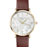The Upper East Side UWCCSG-U27 er udstyret med en guld urskive, en urkasse i rustfrit stål og en rem i skind.