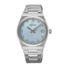 SUR603P1 fra Seiko er det ideelle supplement til dit elegante outfit. Det er kendetegnet ved urkassens klare form. Diamantindekserne tilføjer et glamourøst touch. Det elegante ur er udstyret med en perlemorsskive og safirglas.
