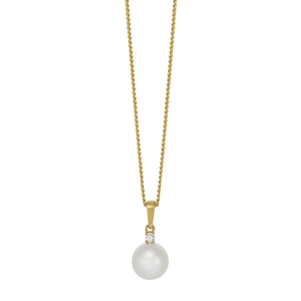 Vedhæng m. Ferskvandsperle 0,035ct TW/SI - 14 kt. Guld