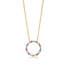 Vedhænget måler 2 cm i diameter og er prydet med facetslebne multifarvede zirkoner, der fanger lyset og tilfører et livligt og sofistikeret udtryk. Et ideelt valg til dig, der ønsker at sætte kulør på hverdagen eller give dit outfit et personligt og eksklusivt touch.