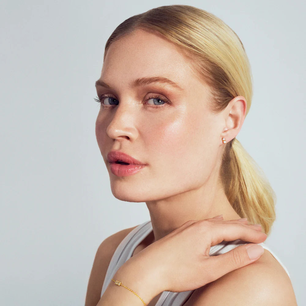 Lucente Due øreringene er indbegrebet af minimalistisk elegance. Fremstillet i 925 sterlingsølv med en smuk, blank forgyldt overflade, kombinerer de klassisk håndværk med moderne finesse. Hver ørestik er prydet med to klare zirkonia-sten i forskellig størrelse, der fanger lyset og tilfører et sofistikeret glimt – diskret, men iøjnefaldende.