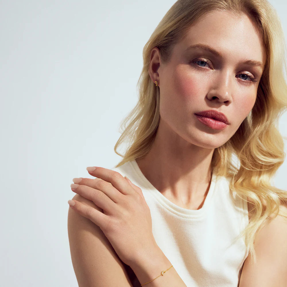 Luna-armbåndet i forgyldt sterling sølv (925) kombinerer tidløst design med funklende zirkonia-sten, der skaber et feminint og elegant udtryk. Den blankpolerede overflade giver armbåndet en varm glød og gør det til et smykke, der passer perfekt til både hverdag og festlige lejligheder.