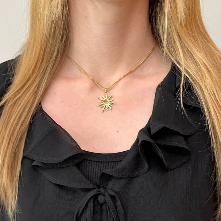 Sol-vedhænget skaber en frisk, cool effekt og tilfører et legende element med masser af personlighed. Halskæden er let, legende og helt perfekt til "cool girls on the move", der ønsker et statement i guld.