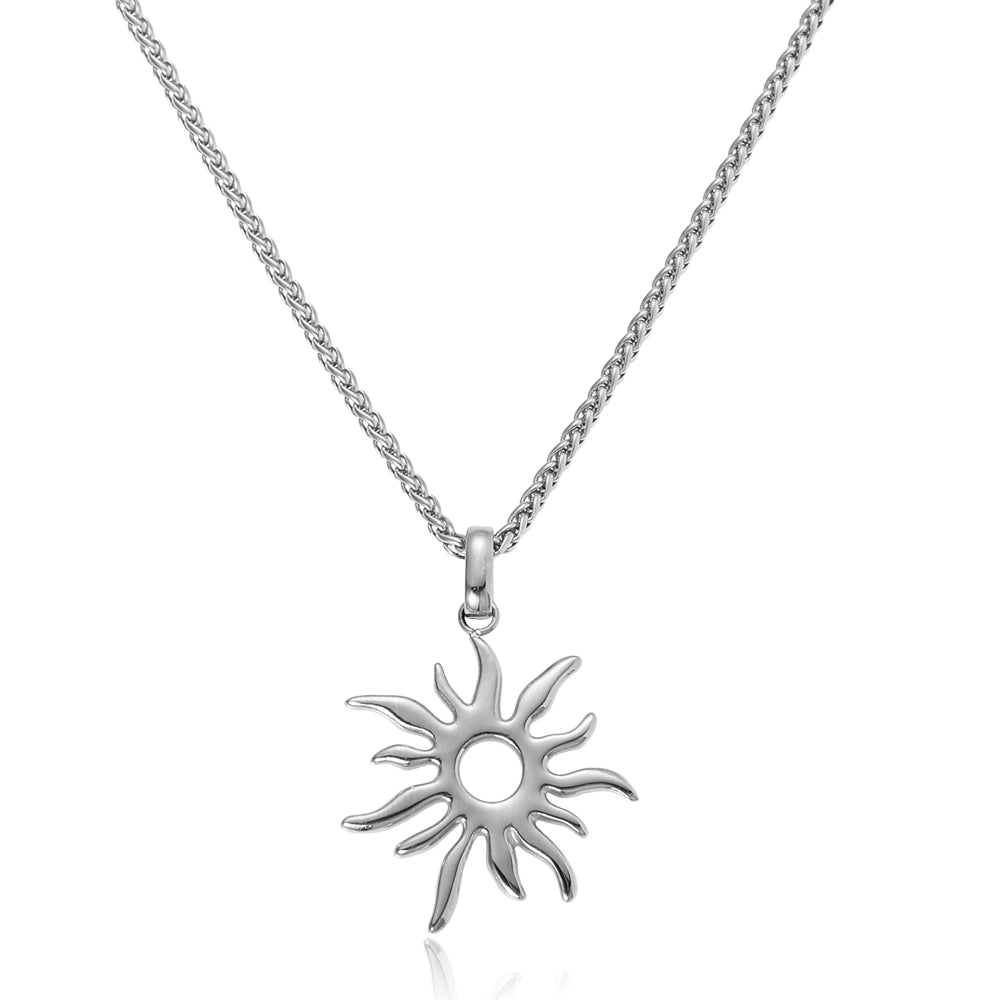 Giv dit look et løft med Sirena halskæden, et perfekt accessory til at matche din energiske stil. Halskæden er udført i holdbart rustfrit stål og prydet med et iøjnefaldende sol-vedhæng.
