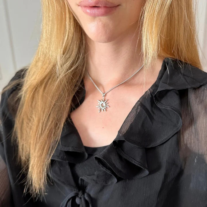Sol-vedhænget skaber en frisk, cool effekt og tilfører et legende element med masser af personlighed. Dette er det perfekte lette smykke til "cool girls on the move", der ønsker et statement uden at gå på kompromis med komforten.