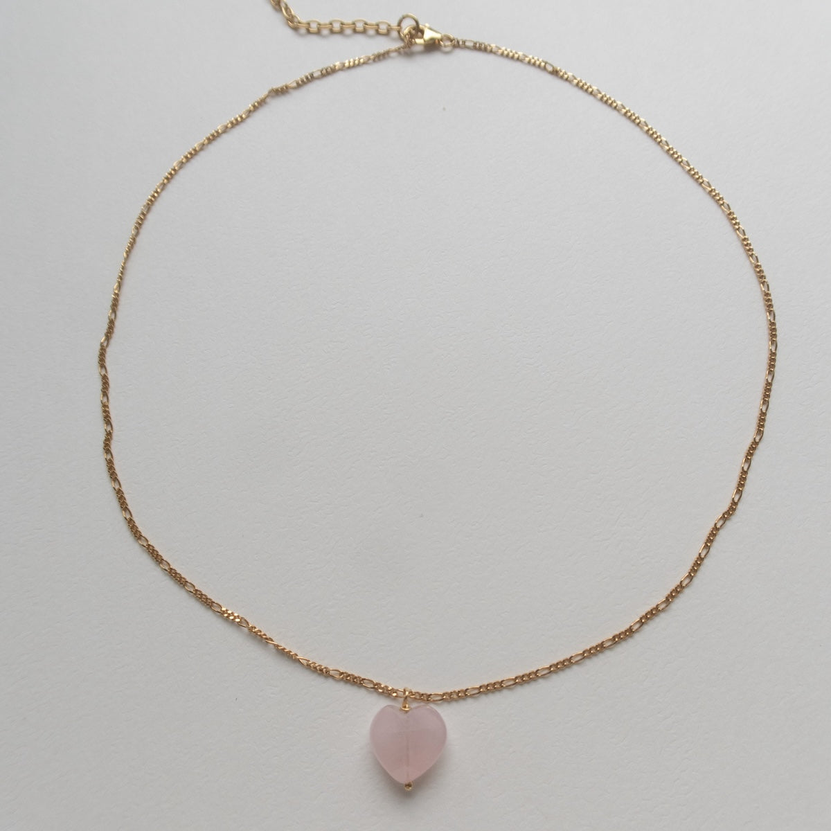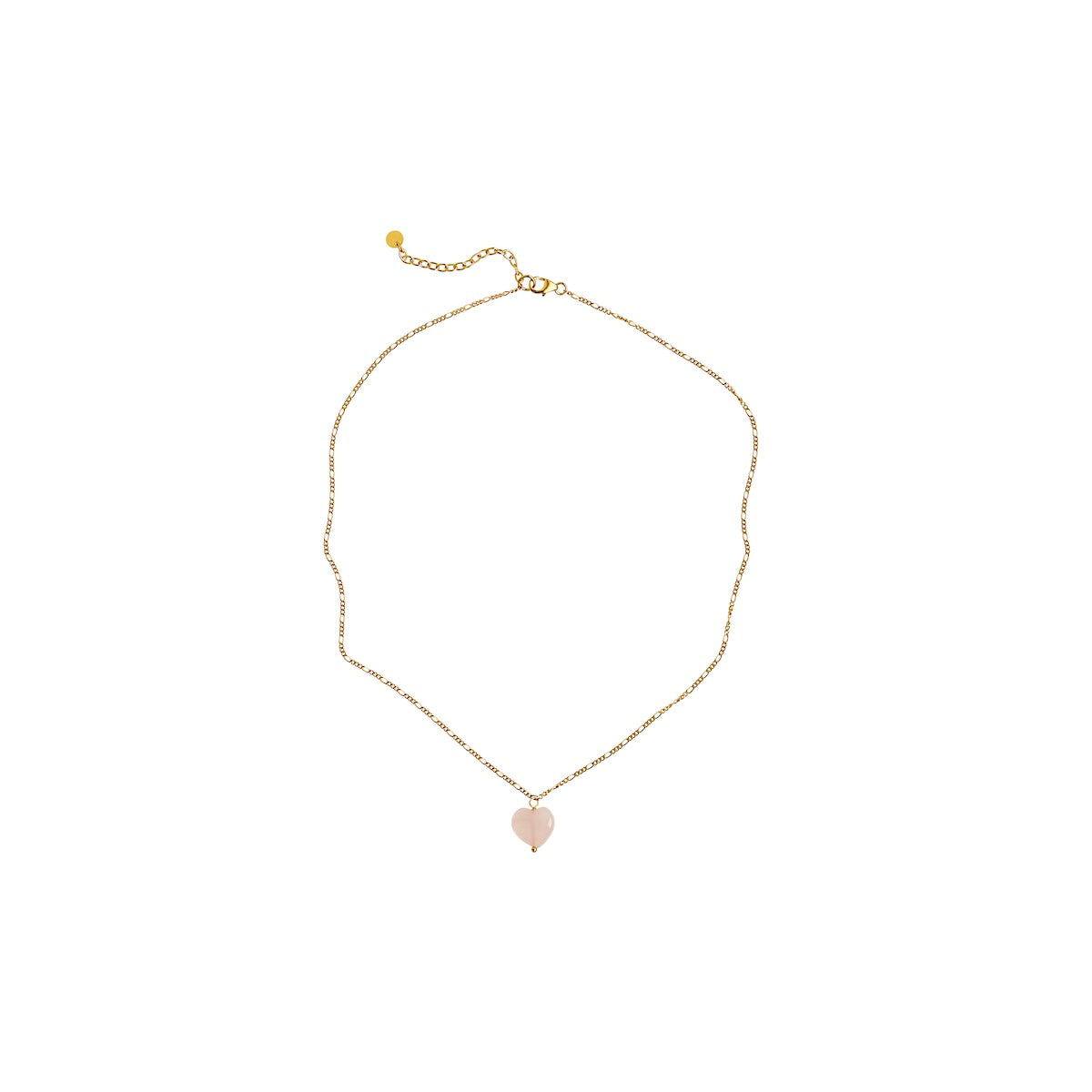 Amour halskæden fra Stine A forener romantisk symbolik med elegant enkelthed. Den fine figaro-kæde i 18 karat forgyldt sterlingsølv prydes af et facetslebet hjerte i rosa quartz – en ædelsten kendt for sin sarte lyserøde farve og blide energi. Et smykke, der tilføjer et feminint og diskret touch til ethvert look.