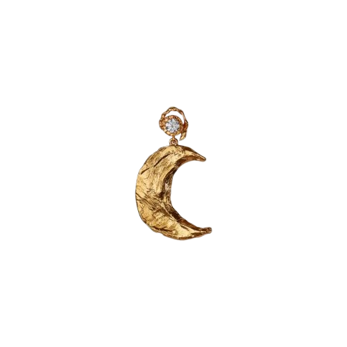Stor og smuk statement ørering fra STINE A i forgyldt sterlingsølv. Øreringen er designet med en ørestik med ædelsten, hvorfra en stor, smuk måne hænger og skaber et levende og dansende udtryk.