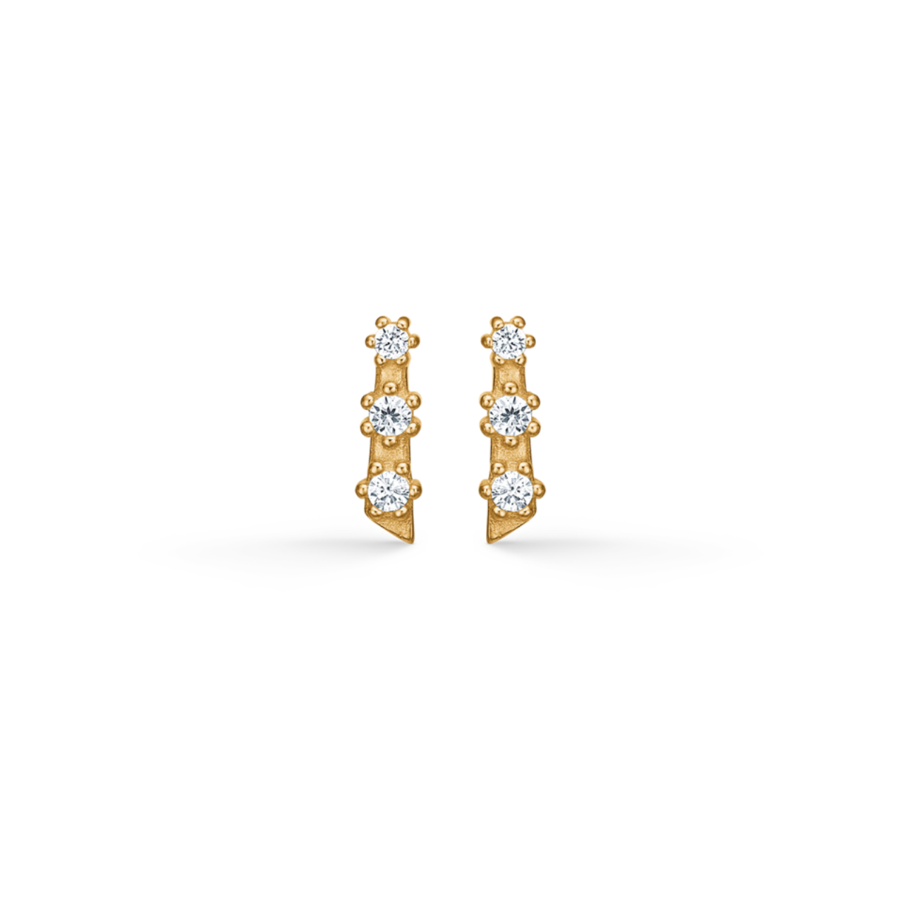 Flare Øreringe i forgyldt sølv fra Studio Z er et elegant og alsidigt valg, hvor den funklende zirkonia-sten får lov at være i centrum. Det enkle design giver et rent og stilfuldt udtryk, der gør dem perfekte både som et diskret hverdagslook og som en del af et mere personligt ear stack sammen med andre øreringe. De skinnende zirkonia-detaljer tilfører et strejf af eksklusivitet, mens den kompakte størrelse gør dem behagelige at bære hele dagen.