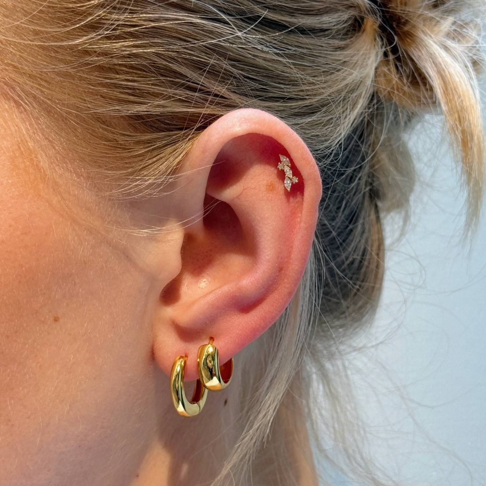 Gleam Øreringe i forgyldt sølv fra Studio Z er en elegant tilføjelse til enhver smykkesamling. Den runde form giver et tidløst og harmonisk udtryk, mens de funklende zirkonia-detaljer tilfører et eksklusivt skær, der fanger lyset og fremhæver designets enkle skønhed. Disse ørestikker er alsidige og lette at style – perfekte til hverdagsbrug, men med nok glans til også at komplementere et mere festligt look.