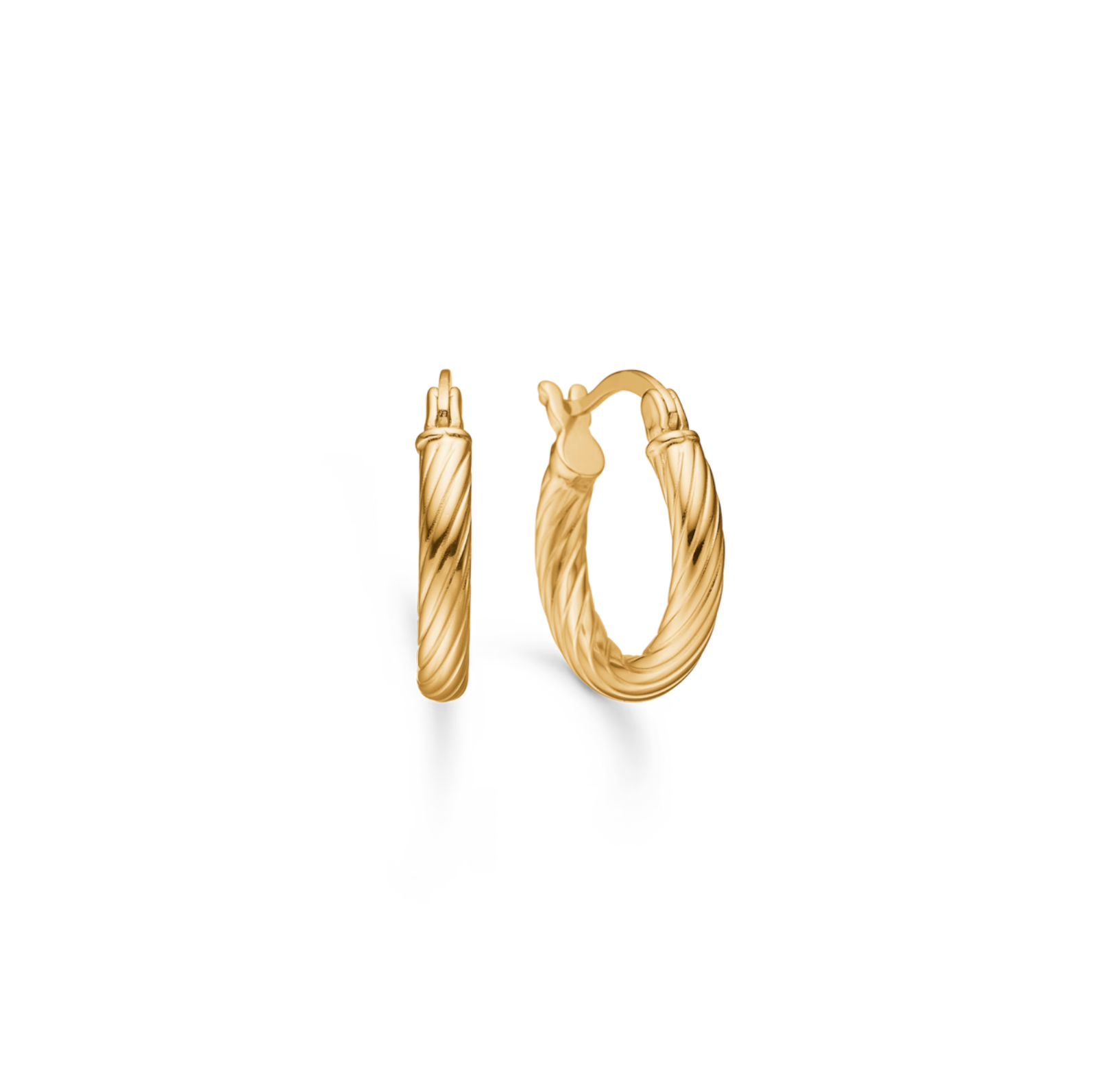 Fremstillet i 925 sterlingsølv med slidstærk 18 karat forgyldning, forener Lumin Spin Small Creoler høj kvalitet med klassisk elegance. Måler 15 mm.