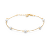 Shore Armbåndet fra Studio Z forener enkelhed med feminin elegance. Smykket er dekoreret med fem hvide ferskvandskulturperler, hver indrammet i sit eget fine led, hvilket skaber et smukt og detaljeret design.