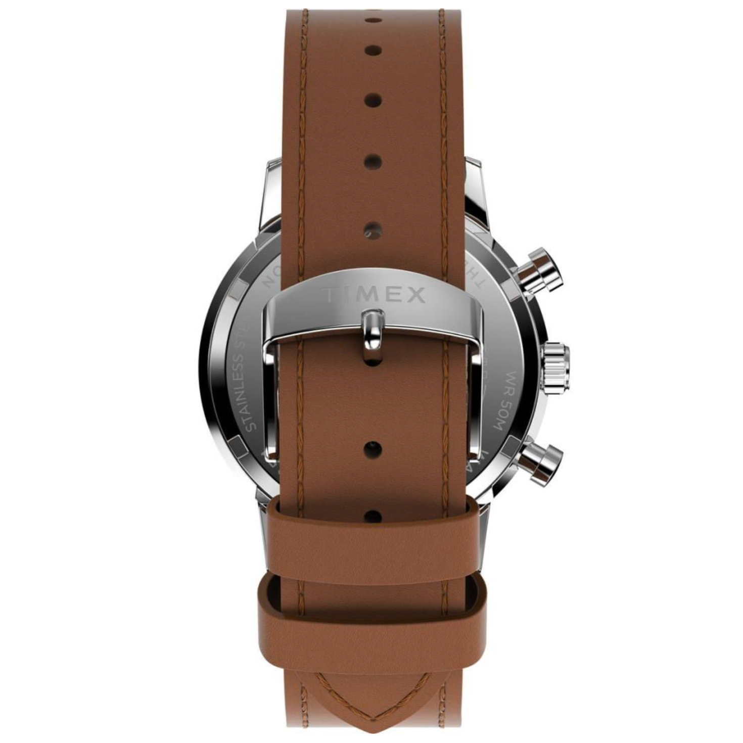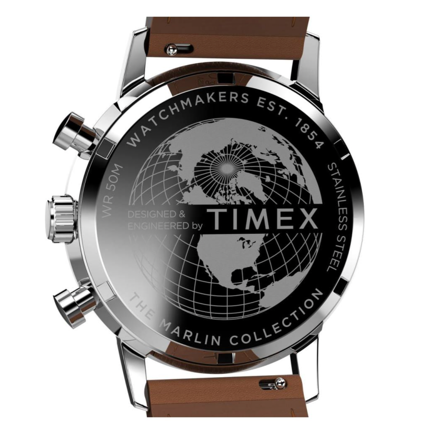 Marlin Chronograph TW2W10100 fra TIMEX kombinerer klassisk urdesign med et friskt og moderne twist. Den dybgrønne skive tilfører karakter og dybde, mens chronograph-funktionerne og tachymeter-skalaen giver et sporty og funktionelt udtryk. De sølvfarvede detaljer og den varme lysebrune læderrem skaber en stilfuld kontrast, der skiller sig ud på den sofistikerede måde.