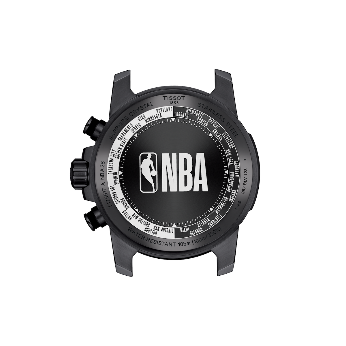 Den sande, skjulte juvel findes på bagkassen: Indviklede graveringer af NBA-logoet er omgivet af navnene på byerne og staterne for både Western og Eastern Conference – en sofistikeret detalje.